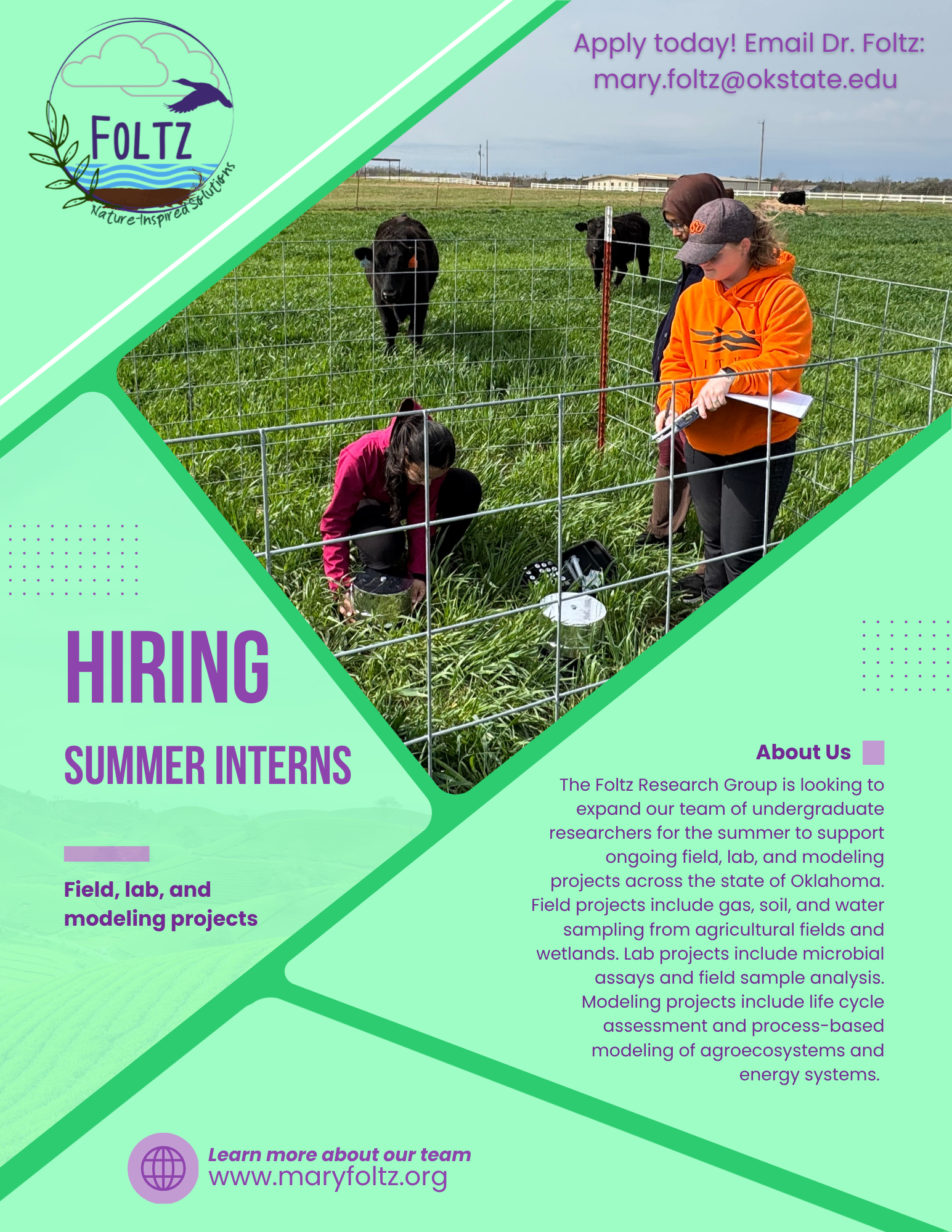 Khalifah, S., L. Booker, M.K. Wilson, S.D. Johnson, J.M. Hutchison, M.E. Foltz. Soil greenhouse gas dynamics under biosolid amendments based on laboratory, field, and modeling approaches. Frontiers in Environmental Science – Soil Science 13: 1577071. DOI: 10.3389/fenvs.2025.1577071.