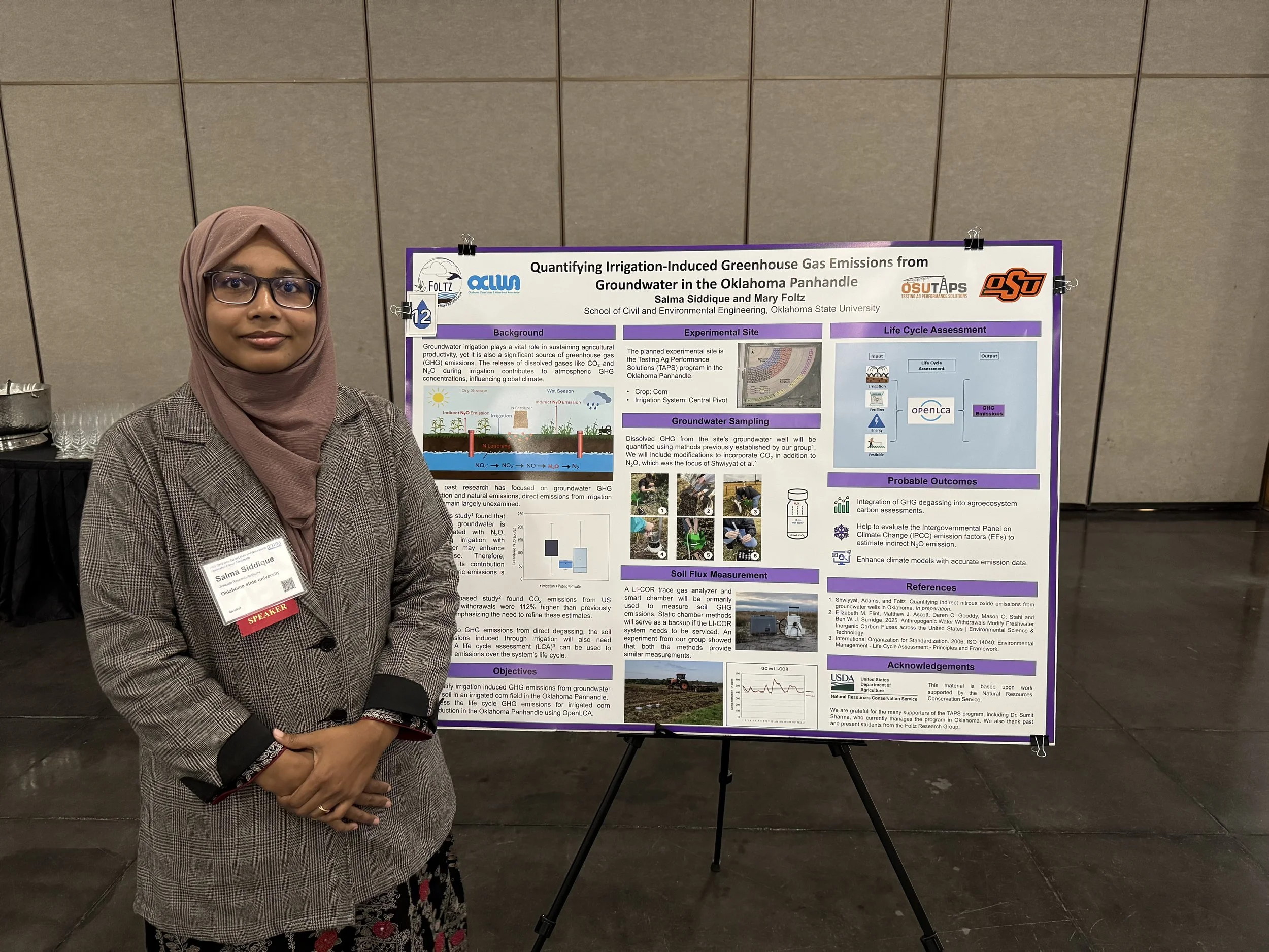 Originally established in Nebraska and later expanded to the Oklahoma panhandle region and other states, the TAPS program allows farmers to interactively compete using a variety of efficient strategies and technologies with a goal to reduce water & energy consumption while optimizing profits and yield. After years of success, the program is eager to incorporate other environmental indicators to the competition. Our team has begun with modeling greenhouse gas emissions associated with energy consumption, materials, transportation, field management, and direct soil emissions from microbial processes. We plan to use field measurements to calibrate and evaluate the model. Then, we aim to incorporate life cycle greenhouse gas emissions to the competition as another metric to optimize.